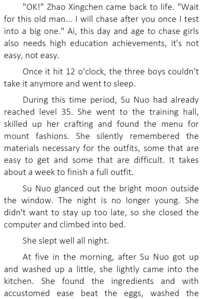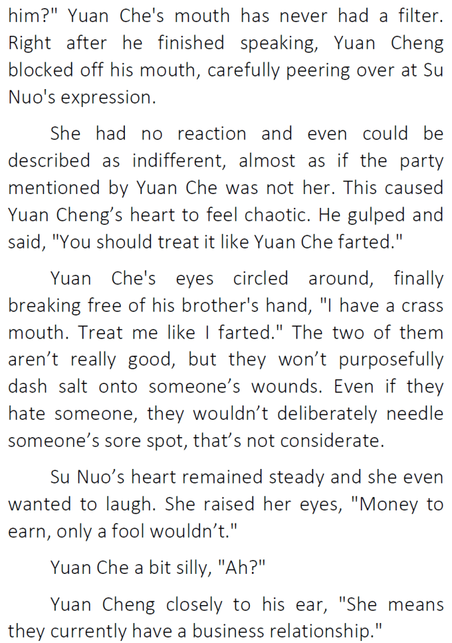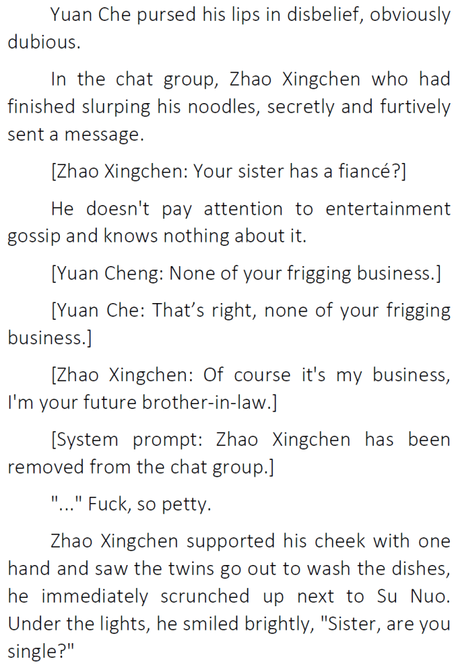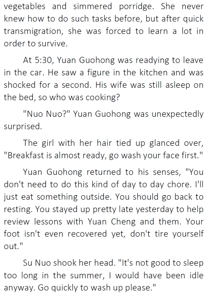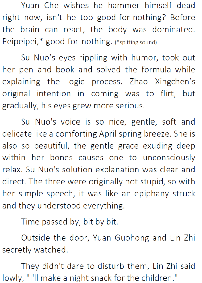 Thanks for the chapter! I’ve honestly been enjoying seeing Su Nuo get along with her original family 😀